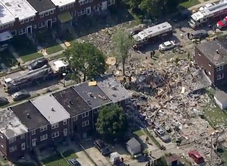 (CNN) -- A major explosion occurred in a residential area in Baltimore, where several people, including children, are trapped, a local firefighters union said on Twitter.