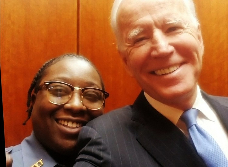 Jacquelyn Brittany, an African American woman who works as a security guard at The New York Times, was escorting the former vice president to a Times editorial board meeting in December when she turned to him and said, "I love you. I do. You're like my favorite." The exchange was aired as part of the Times' TV series "The Weekly," and was circulated on social media.