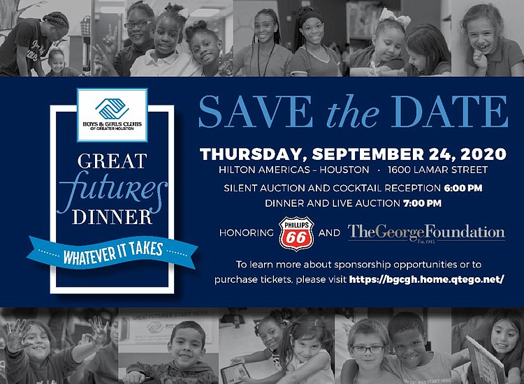 In response to the latest guidelines and information from city, state, and federal officials, Boys & Girls Clubs of Greater Houston has made the decision to postpone the Great Futures Dinner scheduled for April 22, 2020. While it is disappointing to not proceed with the event as planned, safety is our number one priority and we appreciate your patience and understanding.
