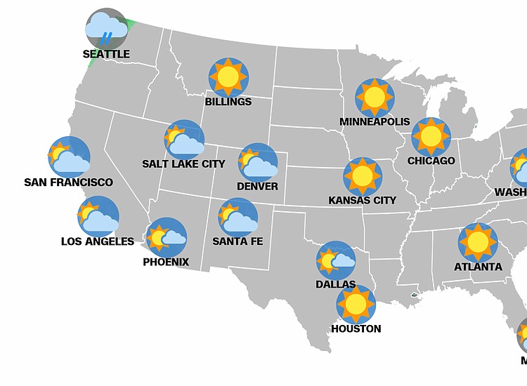 The only other place in the country with yucky weather will be the Pacific Northwest. A system will bring rain and gusty winds to western Washington state. But let's face it, folks, they are kind of pros at doing things in the rain.