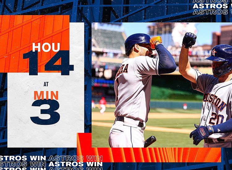 Astros Bats Produce 20-Hits As They Defeat The Twins