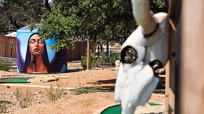 Located across 64 acres in the Texas Hill Country in Dripping Springs, one will find Dreamland, the outdoor entertainment, recreation, and arts venue where folks can find a variety of art pieces. The art program, led by Artistic Director Gareth Maguire, is the focus at Dreamland. There is an impressive array of awe-inspiring sculptures and murals from artists from all over the world. Each is carefully placed throughout the property that also boasts mini-golf, pickleball courts, disc golf, the splash pad, a beer garden, a film and concert screening area that showcases regional musicians weekly, and more.
