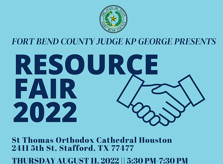 Fort Bend County Judge KP George will host a Free Community Resource Fair on Thursday, August 11, from 5:30 p.m. – 7:30 p.m. at St. Thomas Orthodox Cathedral Houston, 2411 5th Street, TX 77477.