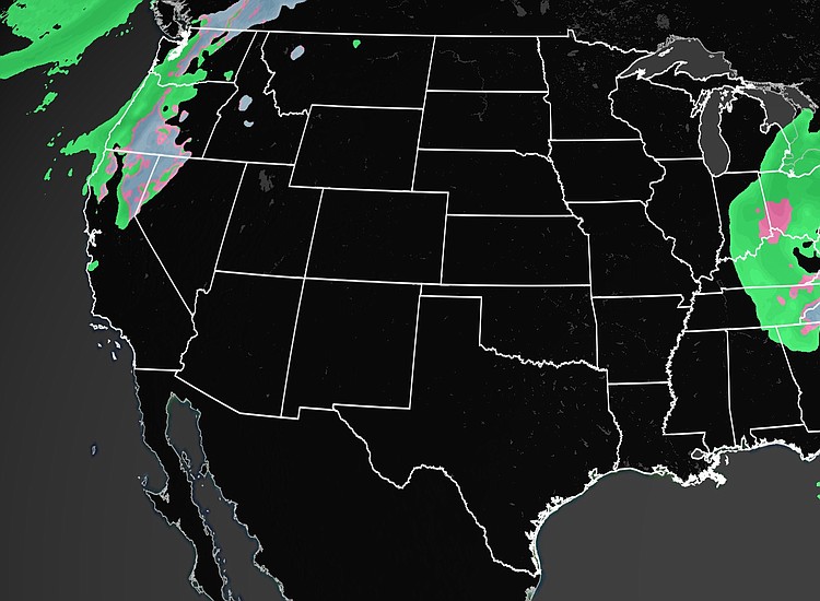 Rain is forecast for much of western Washington and Oregon, with snow for the Cascades.