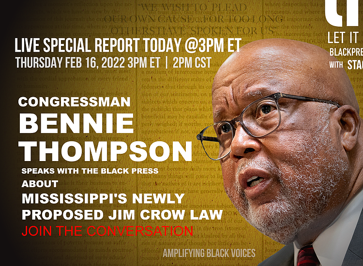 NNPA Live Special Report Today at 3:00 PM ET with Mississippi Congressman Bennie Thompson - Mississippi Proposed Jim Crow Law - Join the Conversation
