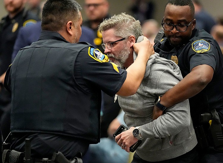 Law enforcement officers arrested three people and removed more from the Acworth town hall. In two instances, a CNN crew witnessed officers use stun guns after physical scrums with male attendees as they tried to remove them from the building.