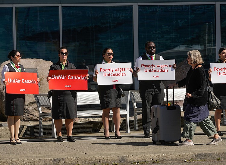 The briefing came to an end early, after members of the union stood silently, holding signs that read “UnfAir Canada” and “Poverty wages = UnCanadian.”