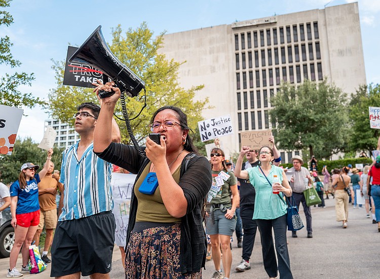 “Here in Austin, Texas, we’re a shining light,” Casar said of the protest. “Authoritarianism is what we’re facing. And when you feel that pit in your stomach, that despair, and when you ask, ‘What can I even do?’ You are showing people what we do.”