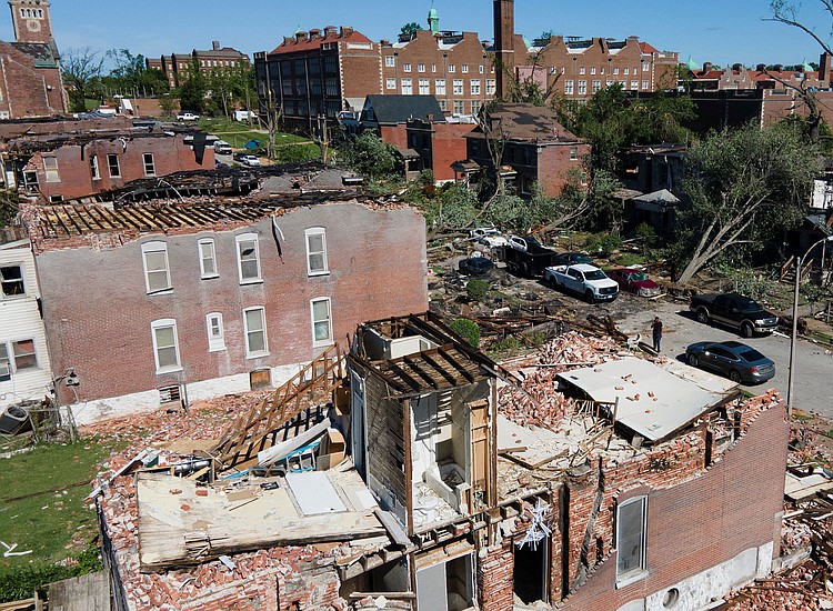 An EF3 tornado rocked the St. Louis area Friday, according to the NWS, reaching its peak intensity with 152 mph winds as it stretched a mile wide over the north side of the city. The tornado killed at least five people and injured dozens, while also “damaging or destroying thousands of buildings.”