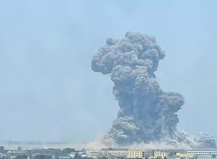 Videos circulating on Chinese social media showed smoke engulfing buildings in an industrial park. Windows in some nearby low-rise buildings were damaged, the footage showed.