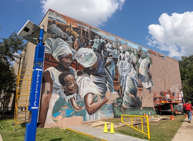 “Jubilee,” now adorning the Rollins-Stewart Music Center, was painted by Houston artists Ade Odunfa and Linda Hinojos, a TSU alumna. “Quilting Party,” on the Health and Physical Education Building, was created by artists Alex Arzu, Bimbo Adenugba, Mathieu Jean Baptiste, and Mack Leon Bishop, also a TSU alumnus.