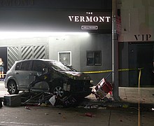 After plowing his car into a crowd outside an LA nightclub, the driver was beaten and shot by bystanders, police say