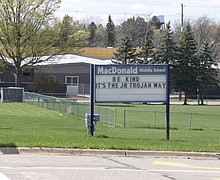 A middle school gym teacher at Macdonald Middle School in East Lansing has been placed on paid administrative leave while the district investigates his alleged use of a racial slur.