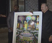 A Houston Texans star was out on the town Tuesday helping unveil a special piece of art made specifically for the Super Bowl.