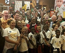Oprah Winfrey helps Freestore Foodbank volunteers make meals for Cincinnati school kids