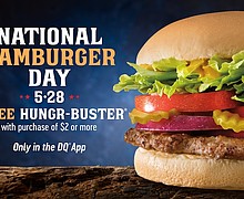 Celebrate National Burger Day the Texas way on May 28 with a FREE Hungr-Buster® from DQ®—just spend \$2 in the DQ® App at participating locations! 🍔📱