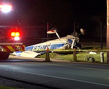 An aircraft hit a power line and crashed in Houston on Saturday night, killing one person and knocking out power in the area, according to the Harris County Sheriff’s Office.