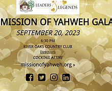 The Mission of Yahweh, a faith-based shelter that empowers, enriches, and restores the lives of homeless women and children, will host the inaugural Leaders & Legends Gala on Wednesday, September 20, 2023, at 6:30 p.m. at the River Oaks Country …