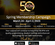 KTSU 90.9 FM, Houston's legendary public radio station announces the launch of its spring membership campaign from March 24 to April 2, 2023.