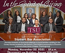 Texas Southern University Thurgood Marshall School of Law Student Bar Association Board of Directors transcend compassion and TSU Tiger pride on the brink of Thanksgiving holiday,