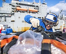 Houston sailor removes cargo net aboard USS Milius