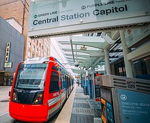 On Wednesday, Feb. 20, 2019, free METRO shuttles will be provided to METRORail riders from the Theater District to Magnolia Transit Center and Palm Center while CenterPoint Energy works on a high-voltage power line in East Downtown.