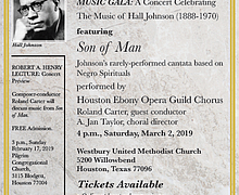 Houston Ebony Opera Guild announces its Annual African American Music Gala, a concert featuring SON OF MAN, composer Hall Johnson’s cantata based on African American Spirituals. Roland Carter will conduct the chorus. With Bishop Robert E. Hayes, Jr. as narrator, …