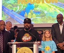 Rapper, actor, and producer Ice Cube had a few busy hours upon arriving in Houston ahead of his press conference with Mayor Sylvester Turner and basketball legend Clyde Drexler for the Big3.