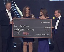 Houston Sports Authority CEO Janis Burke and HCHSA Public Relations Director Patti Smith presented Star of Hope CEO and President Hank Rush a check for $50,000.
