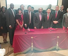 Houston Mayor Sylvester Turner and officials of CIMC-TianDa, a China-based firm, have signed a memorandum of understanding under which the company could develop a base of operations for manufacturing in Houston.
