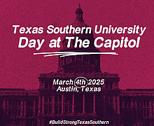 Join Texas Southern University in Austin on March 4 for TSU Day at the Capitol to advocate for funding, student success, and the future of Texas education!