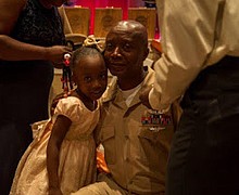 Navy Chief Personnel Specialist Mutiu Aderinoye, from Houston, was recently promoted to chief petty officer, an accomplishment that only one in five eligible sailors achieve each year.