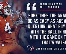 On Thursday night, the Texans surprised everyone when they traded up to No. 12 to select quarterback Deshaun Watson. From the moment, Bill O’Brien and Rick Smith met the 6-2, 221-pound national championship winner, they knew he was a good …