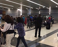 At Bush Airport, families waited Monday afternoon for relatives to arrive from overseas. It could take hours for them to clear customs, even though some of them have green cards.