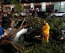 Hurricane-force wind gusts in Houston kill 4, smash skyscrapers and cut power to hundreds of thousands