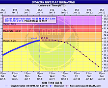 The National Weather Service has issued a flash flood warning for the Brazos River in Richmond until Thursday, Jan. 10 with water level at 45.45 feet at 11:15 a.m. today (Jan. 8). This has caused minor flooding in some areas …
