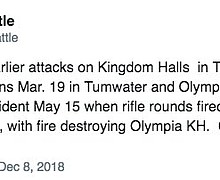 ATF: There have been 5 attacks on Jehovah's Witnesses in Washington state this year