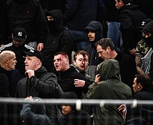 Ajax reached the Champions League knockout phase for the first time in 13 years but the Dutch club's 2-0 win at AEK Athens was marred by violent clashes both in and outside the Athens Olympic stadium on Tuesday.