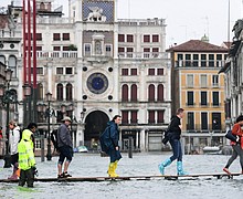 Strong winds and heavy rain have battered parts of Italy, causing nine deaths and the worst flooding seen in Venice for at least a decade.