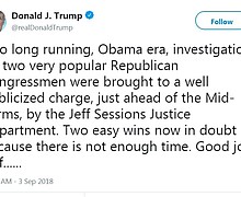 President Donald Trump on Tuesday evening amped up his attacks on veteran journalist Bob Woodward, baselessly suggesting he is a Democratic operative because his new book portrays chaos and dysfunction inside the White House.