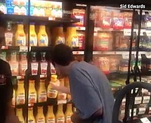A grocery store employee is being lauded for helping a teen with autism stock shelves in a fridge.