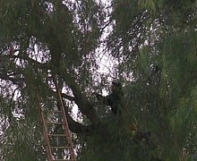 A woman who had climbed up a tree in Canoga Park and refused to come down for nearly 12 hours was finally coaxed down by firefighters Tuesday morning, officials said.