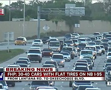 30 vehicles experience flat tires on Interstate 95 northbound in Palm Beach County