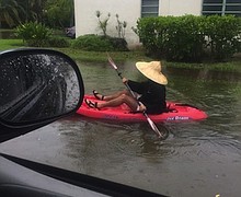 The remnants of Tropical Depression Emily prompted some Miami residents to take to the flooded streets in kayaks.
