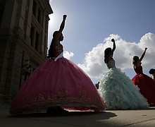 A group of 15 teenage girls, dressed in brightly colored gowns, stood in front of the Texas State Capitol to participate in one of Latin American culture’s most cherished traditions: the quinceañera.