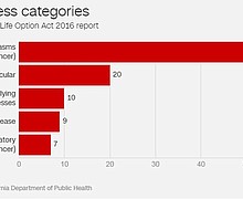 One hundred eleven people died last year under California's new right-to-die law, according to a report released Tuesday by the state's Department of Public Health.