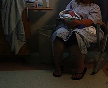 Debbie rocks her grandson, gently cradling the newborn in the specialized neonatal unit at Cabell Huntington Hospital.