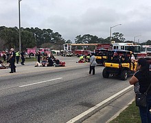 Twelve Alabama students were injured Tuesday when a car plowed into a marching band during a Mardi Gras parade