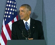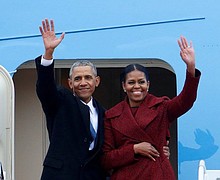 Former President Barack Obama bid farewell to members of his staff Friday at Joint Base Andrews in Maryland before departing with his family for a vacation in California: