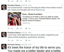President Barack Obama tweeted the American people in his final hours as head of state promising to continue his work with them, and unveiling a new website.